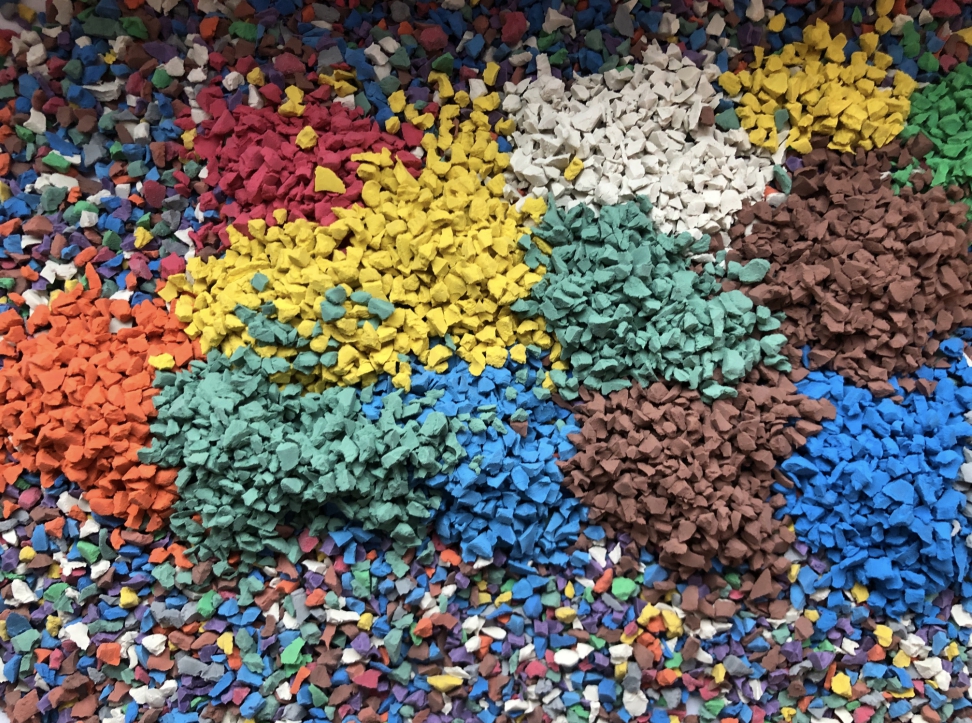 Яркий и экологически чистый гранулят. Сделан из каучука. Входит в состав травмобезопасных покрытий спортивных и детских площадок. Материал сохраняет цвет на протяжении всего срока эксплуатации. Устойчив к температурным колебаниям и осадкам.